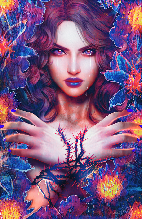 “Torment” captures the raw beauty of inner pain, where tears and thorns intertwine to symbolize both suffering and resilience.
